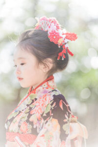 スタジオ撮影(白背景撮影) ※お着物1着の撮影 / お参りロケーション撮影 / 主役1名+家族撮影(web納品)80cut〜 / 着物1着 / ヘッドアクセサリー / 着付け / ヘアメイク